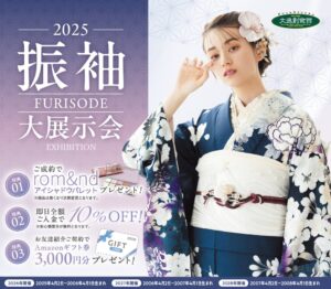 新作振袖がずらりと並び、最新のトレンドから古典柄まで、