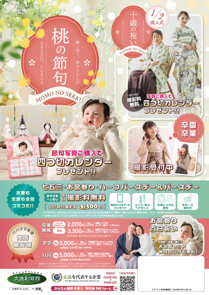 節句写真ご購入で四切りカレンダープレゼント