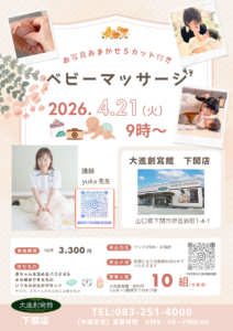✨下関店初のベビーマッサージを開催します✨