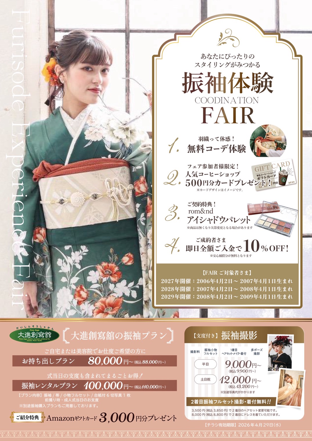 気になる振袖を実際に羽織ってコーデ体験ができます