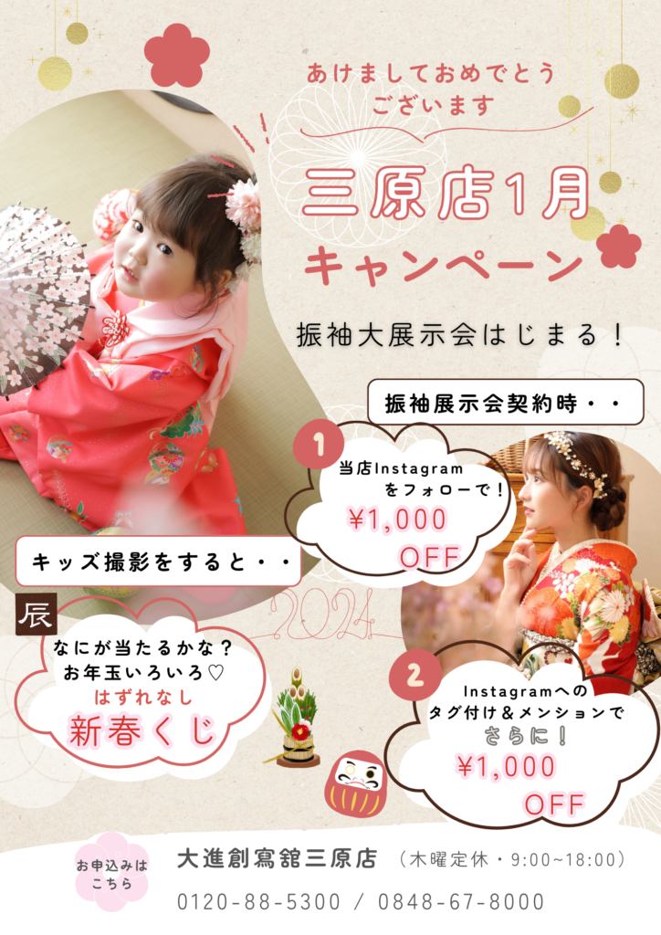 ①当店Instagramの振袖アカウントをフォローでご契約金額から¥1,000オフ!