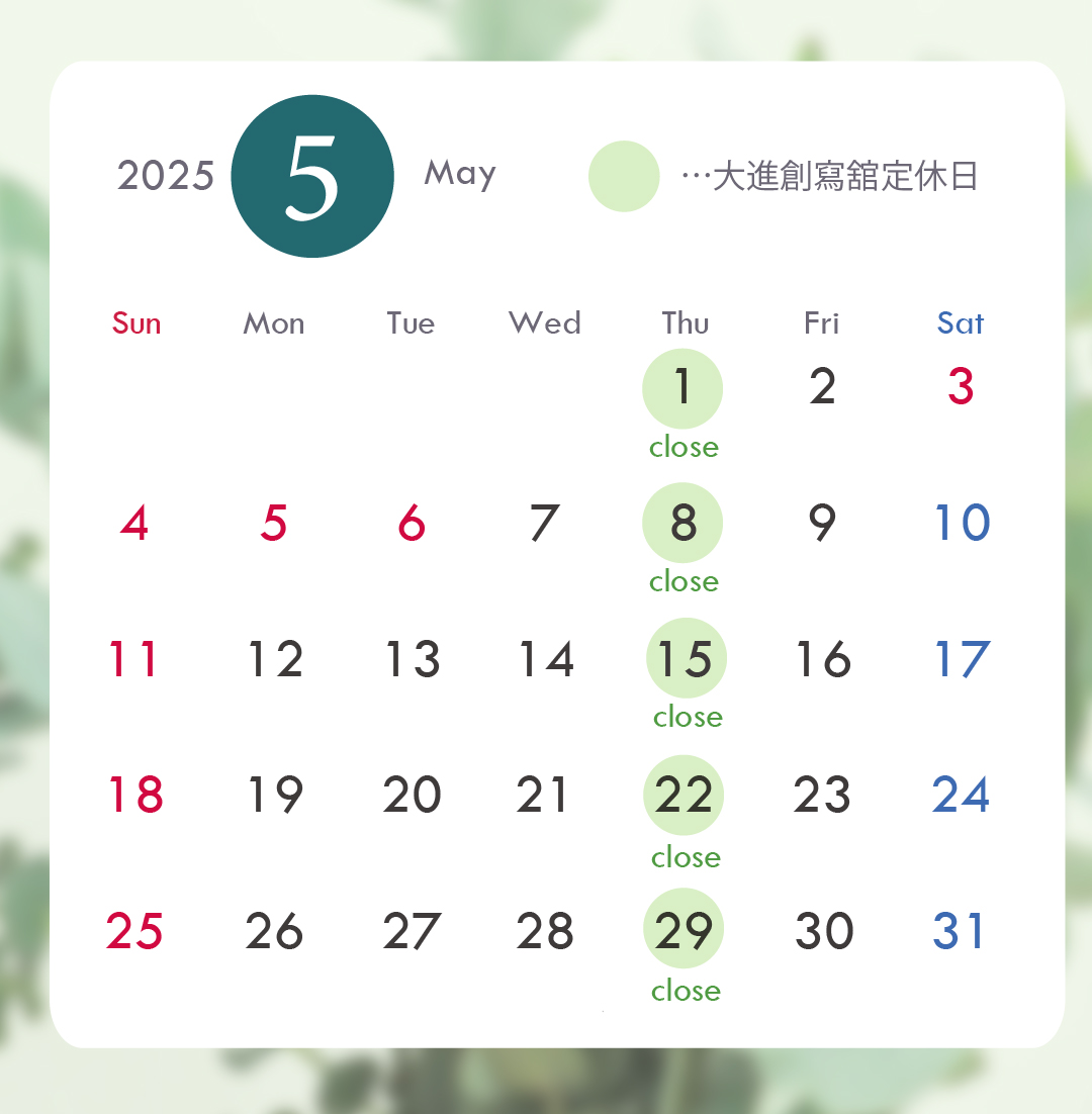 2025年5月・6月は下記の通り、営業させていただきます。