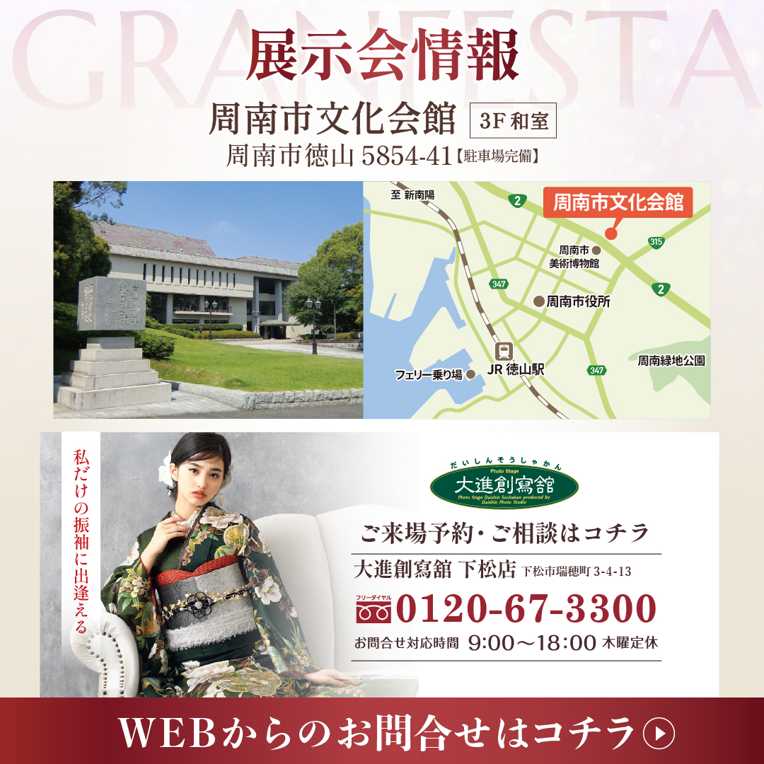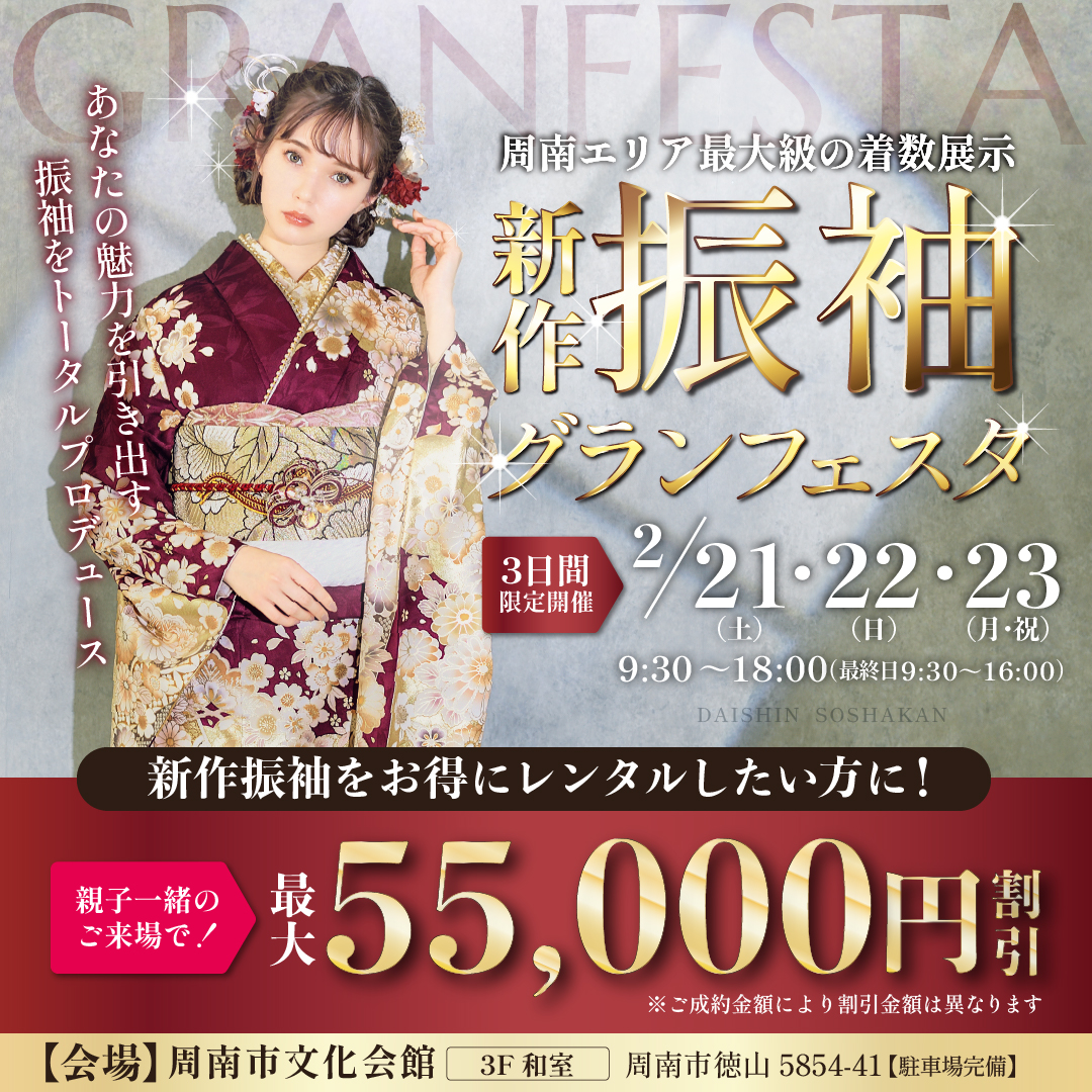 【下松店】新作振袖おひろめ!3日間限定の豪華特典ついてくる!
