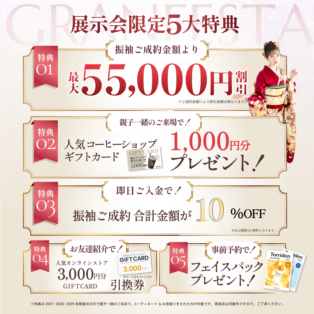 振袖がお得にレンタルできるチャンス!今だけの豪華来場特典をゲットして可愛い振袖も早い者勝ち♪