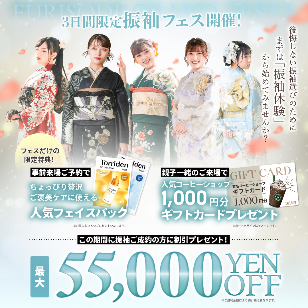 今だけ親子来場でギフトカード1,000円分など嬉しい特典つき!「似合う」がわかると、一気に楽しくなる“振袖体験”始めませんか?