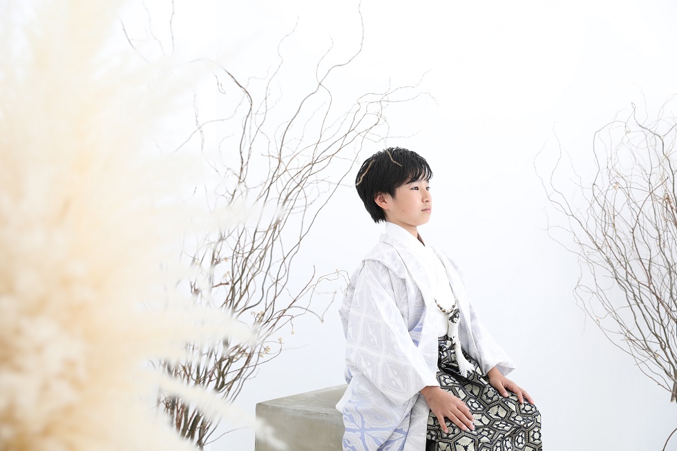 女の子は七五三で着るような子ども用の着物ではなく、大人用の着物を着ます。それは本裁ち(ほんだち)と呼ばれる、大人サイズの着物のことです。子どもにはサイズが大きいので、肩の部分を摘みあげて縫う「肩上げ」をした状態で着用し、お参りから帰った後、肩上げをほどいて、大人になったことを祝います。男の子は紋付羽織袴(もんつきはおりはかま)の正装がおすすめです。