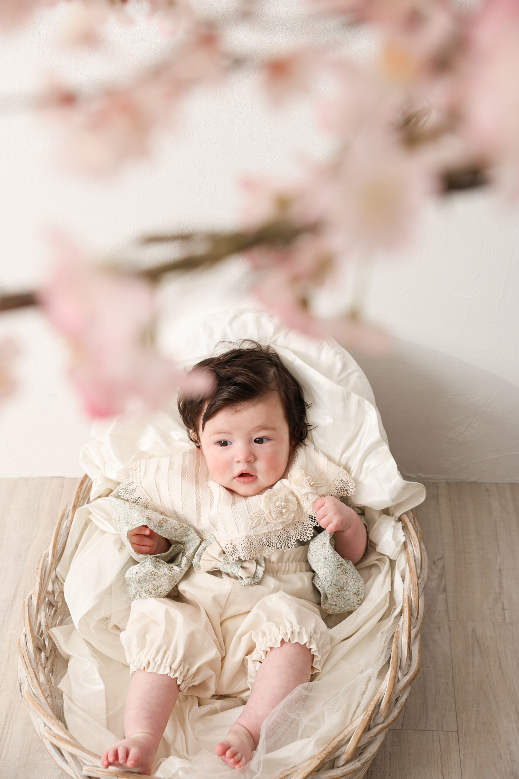 首の座っていない赤ちゃんでも安心の専用椅子での撮影可能です。パパママが考えた素敵な名前と一緒に撮影する「命名書」はもはや定番人気♪